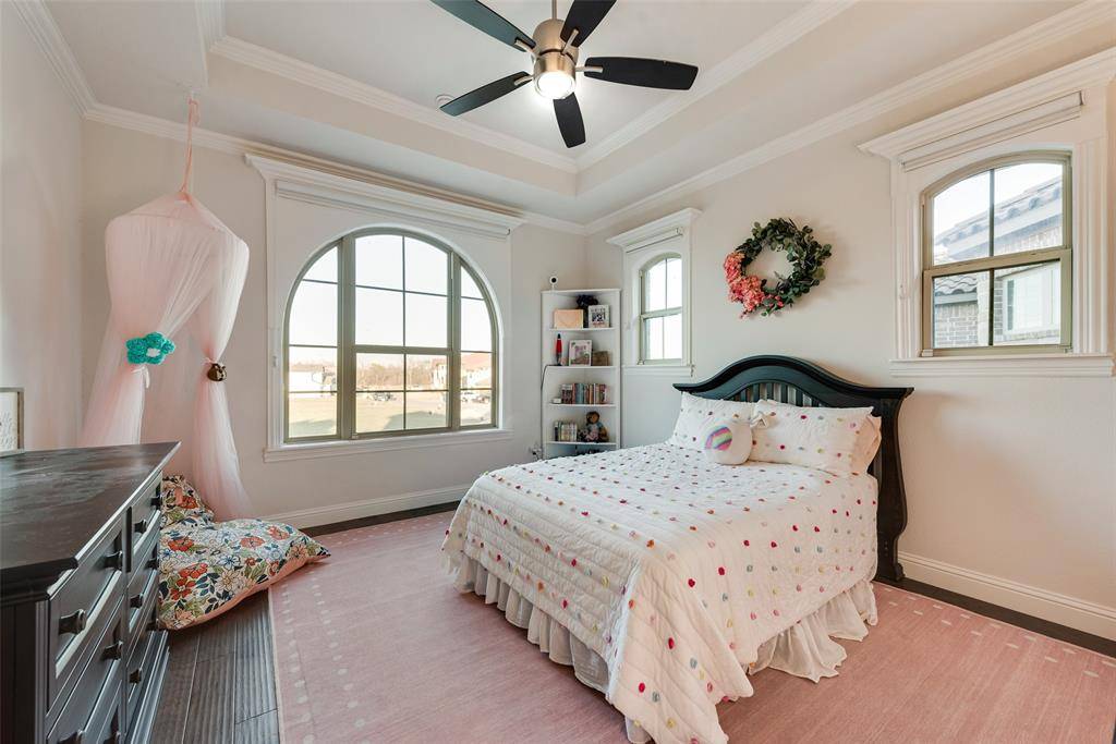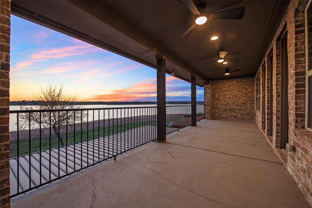 Welcome to this stunning custom-built home located in the only 24-7 gated and guarded golf course community on the lake! This immaculate home features 4 bedrooms, 4 full bathrooms, a designated office, bonus room with add. flex space, and the most amazing view of Eagle Mountain Lake! Enjoy the expansive open living, kitchen and dining area adorned with beautiful wood beams and a floor to ceiling stone fireplace, seamlessly connecting to the outdoors making it the ultimate indoor & outdoor living experience. Enjoy waterfront views from every angle! The kitchen is complete with an induction cooktop, oversized island, pot filler, beverage cooler and a walk in pantry. The master suite is on the first floor and offers serene lake views and direct access to the laundry room through the thoughtfully designed closet. Upstairs discover two additional bedrooms, a bonus room, and office leading to the oversized balcony overlooking the lake with access from the office and bonus room. Outside, entertain in style with two seating areas, outdoor kitchen with a built in grill, and fire pit making it perfect for entertaining. The patio also features a louvered roof pergola. Custom shades throughout the entire home with the main living area and master being electronic. Whole home water filtration and softener system, as well as a Reverse Osmosis water system in the kitchen! The neighborhood cannot be beat! 18-hole golf course, clubhouse with restaurant and bar, two pools, fitness center, basketball and pickle ball court, beachfront area, boat ramp, docks and the list goes on! Don't miss this chance to make this unique property yours!