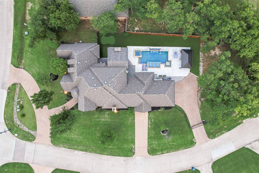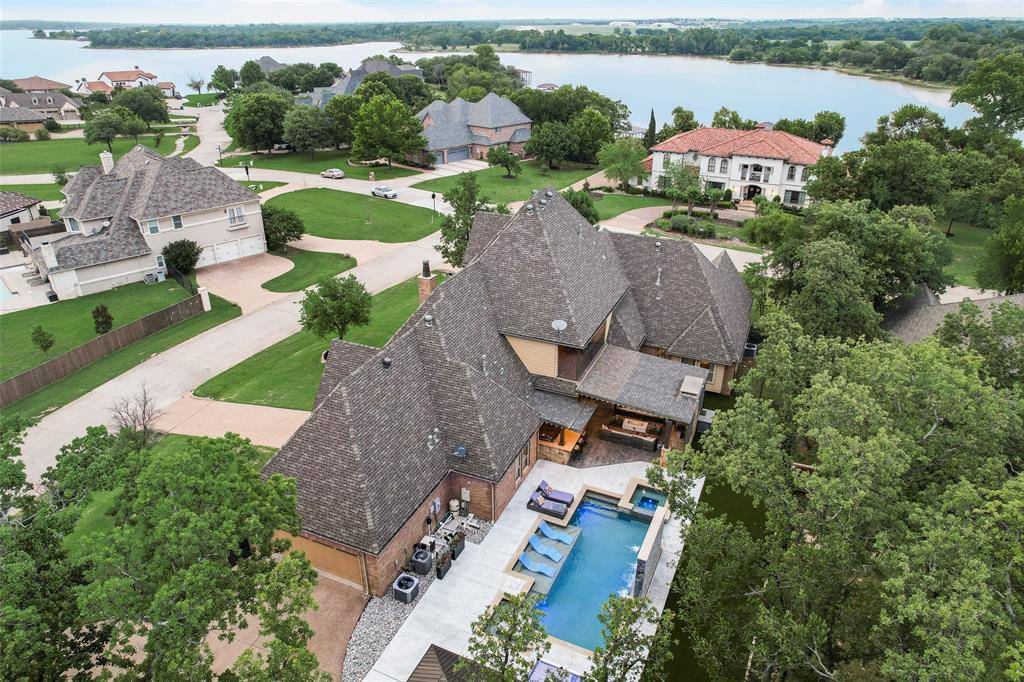Stunning luxury home on a huge corner lot in the only 24-7 gated & guarded community on Eagle Mountain Lake, The Resort! Welcome to the exquisite 4 bedroom, 4 bathroom home nestled on a spacious corner lot. This beautifully designed residence features an open floor plan, room for the entire family, and a backyard you will never want to leave. The chef-inspired kitchen is complete with high-end appliances, including a built in refrigerator, gas cooktop, double ovens and opens seamlessly to an inviting living room with a stone fireplace, vaulted ceilings, and plenty of room for everyone to relax. The thoughtfully designed floor plan offers split bedrooms downstairs, including a luxurious primary suite with a wet bar, additional seating area, access to the backyard, spa-like bath and oversized closet. Upstairs you will find two additional bedrooms, two full baths, and a spacious game room that opens to a balcony overlooking the serene backyard and scenic 17th hole of the golf course. The game room also offers attic access with potential room for expansion if needed. The backyard is truly in a league of its own with multiple living areas, outdoor kitchen, fireplace, beautiful pool and spa with tanning ledge with loungers, in-pool seating area, and water features overlooking the beautiful built in TV to enjoy. Turf putting green completes the backyard surrounded by mature trees. The oversized garage provides ample space for vehicles, golf carts, boats, or any and all of your outdoor toys. This community includes an 18 hole golf course, private boat ramp, dock, two pools, fitness center, basketball and tennis court, clubhouse restaurant and bar. Enjoy the elegance, peace, and serenity of Resort styled living while not sacrificing proximity!