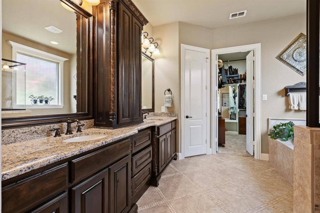 This stunning one-story custom home truly has it all. From the moment you arrive, you're greeted by a richly stained wood front door with elegant glass and iron inserts. Inside, you'll find custom cabinetry, rich wood flooring in the main living areas, and detailed craftsmanship throughout — including intricate ceiling designs, custom woodwork, and beautiful trim.
