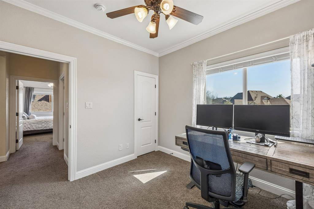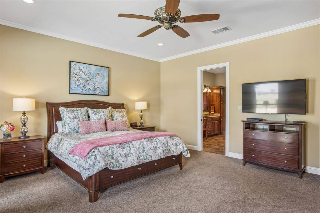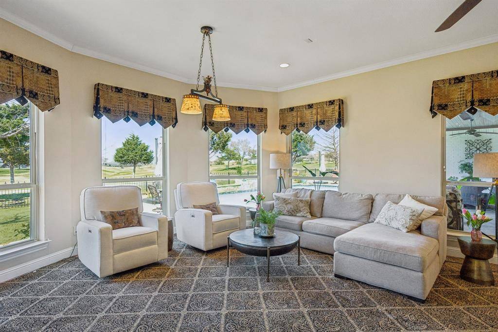 **ASSUMABLE LOAN AT 2.25%** Welcome to this custom-built, one-owner home in the 24-7 gated and guarded community of The Resort, the only golf course and lake community on Eagle Mountain Lake. This home features an exceptional floor plan with an open kitchen & living area ideal for everyday living and entertaining. The living room showcases built-ins and a large real wood-burning fireplace with double doors and windows that fill the space with natural light. A spacious game room sits just off the living area for additional gathering space. The kitchen features a large island, brand new double ovens, an abundance of cabinet space, and while currently all electric, it is plumbed for gas inside and for the outdoor grill. The private primary suite offers backyard access, a large en-suite bath and oversized walk-in closet that connects to the laundry room. The first floor also includes a guest bedroom & full bath. Throughout the home are 8 ft. doors, extra wide doorways, and large capacity hot water heaters, including a dedicated tank for the primary suite. Upstairs features two bedrooms connected by a Jack & Jill bath plus an office with built-in desk and private balcony overlooking the golf course. Step outside to a backyard designed for entertaining with an expansive 800 sq ft covered patio with built-in gas grill for seamless indoor-outdoor living. The oversized pool overlooks the golf course, creating a relaxing setting for gatherings or quiet evenings. The property also features a double-wide driveway with ample guest parking and a three-car garage including an oversized bay large enough for a boat. Community amenities include an 18-hole golf course, clubhouse with pro shop, restaurant, bar, fitness center, two community pools, playground, pickleball & basketball courts, plus a beach area with pergolas, boat slips and boat ramp. Located just 30 minutes from DFW Airport and downtown Fort Worth.