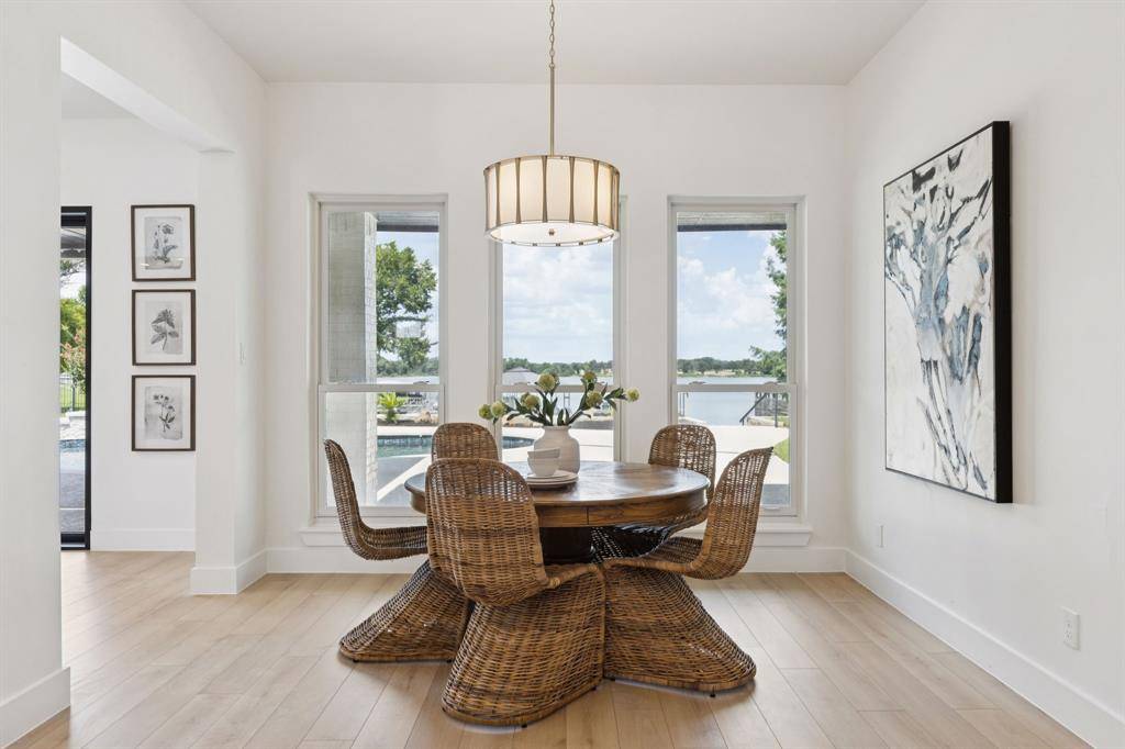 Every detail has been thoughtfully considered in this stunning down-to-the-studs renovation of a premier 5-bedroom, 5-bathroom waterfront estate, located within the prestigious 24-hour gated and guarded community of The Resort on Eagle Mountain Lake. Set on a generous 0.652-acre lot with 92 feet of prime main-body lake frontage, this exquisite home offers the pinnacle of luxury and the ultimate lakefront lifestyle. through a custom-crafted luxury iron front door into an open-concept design anchored by a chef's kitchen outfitted with professional-grade Thermador appliances, including a built-in refrigerator, double ovens, walk in pantry, and commercial grade range. Custom accordion doors seamlessly connect the living spaces to a brand-new resort-style pool and spa while framing panoramic views of the lake. All but one bedroom are located on the first floor, including a private primary suite with sitting area and spa-inspired bath featuring a walk-in rain shower and custom closet. Upstairs, a bedroom with private balcony and full bath overlooking the lake creates an ideal retreat for guests or family. A mother-in-law suite with separate entrance, living area, kitchenette, and full bath further enhances flexibility for multi-generational living. Additional highlights include a bonus room that could be used as a media or game room, single-story dock with boat lift, hardwood decking, and metal roof. Located in a no wake portion of a cove which creates the most peaceful and serene setting. Residents also enjoy access to the community amenities, featuring an 18-hole golf course, clubhouse restaurant and bar, fitness center, two pools, pickleball and basketball courts and more. This property is a rare opportunity to own a completely re-imagined waterfront estate with world-class finishes, unmatched views, and the resort lifestyle to match.