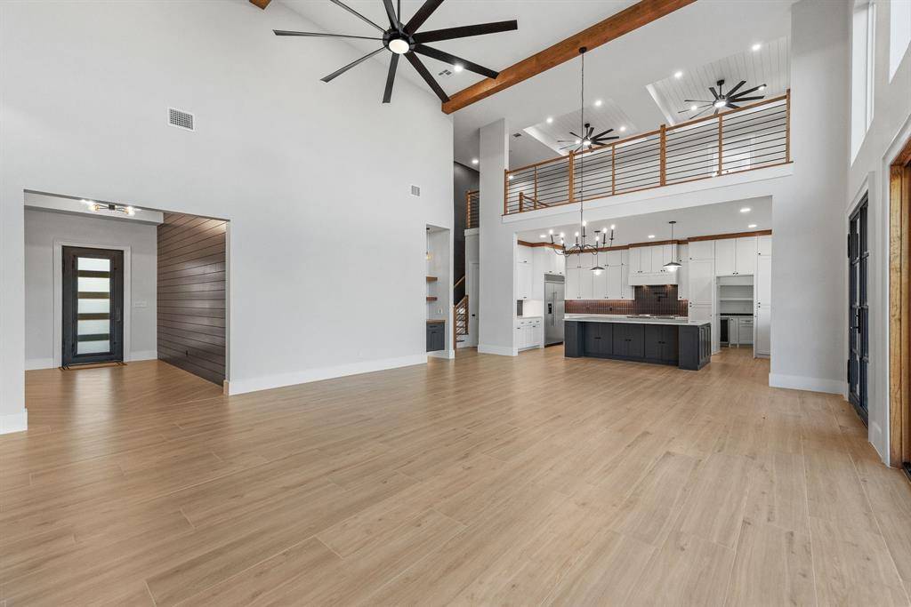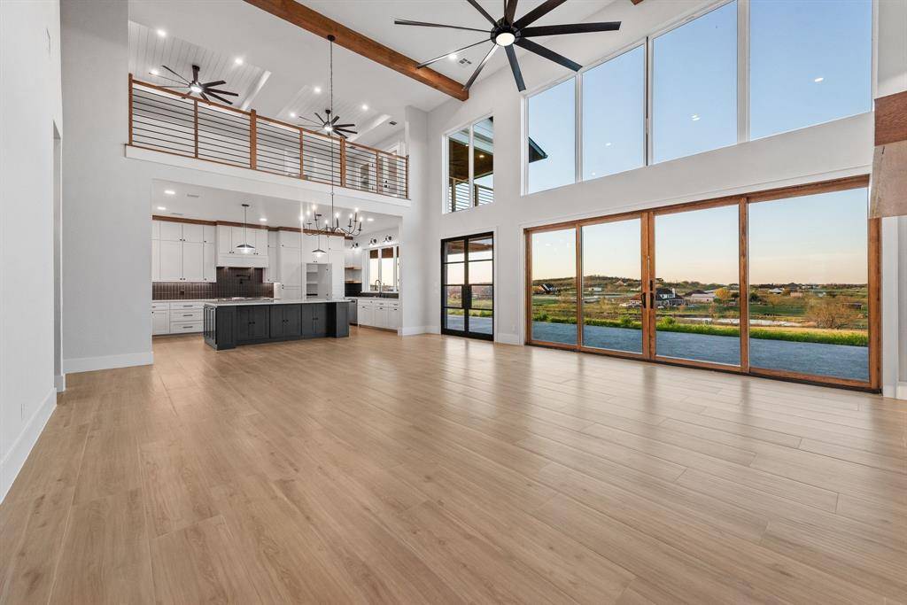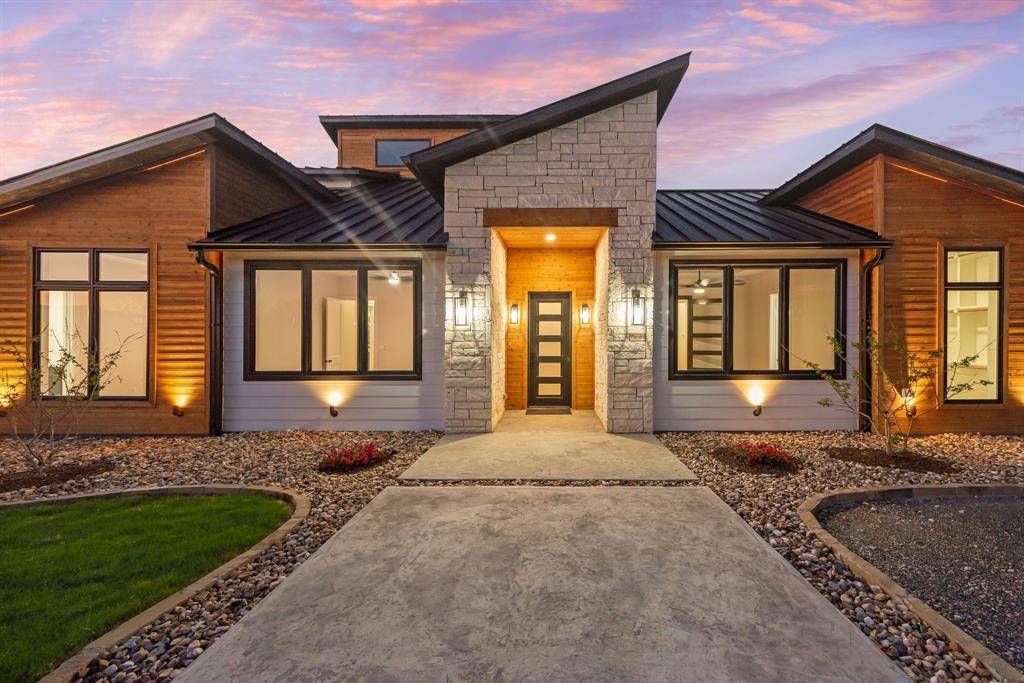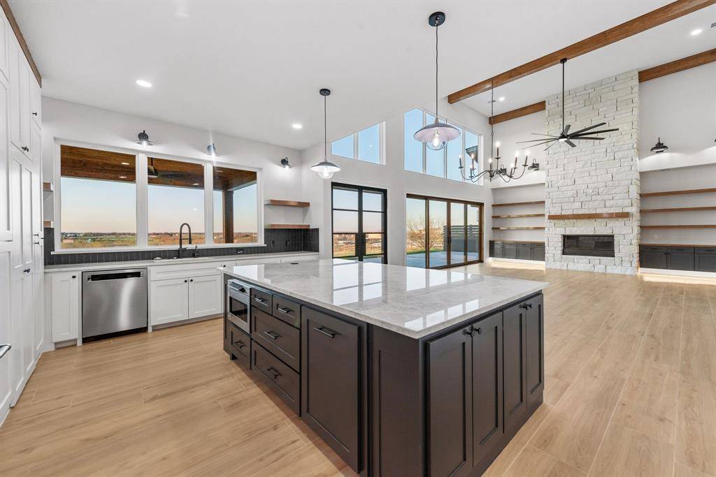 Welcome to this beautifully crafted custom Hill Country modern home set on over 5 acres, offering more than 3,600 square feet of thoughtfully designed living space with breathtaking views of the surrounding countryside. Designed for both everyday living and entertaining, the home features soaring 20-foot ceilings throughout the main living areas, creating a bright and airy open concept layout. The spacious living room showcases a dramatic floor to- ceiling stone fireplace, custom built ins, and expansive sliding doors that open to the outdoor living space. The gourmet kitchen is a true centerpiece, featuring high end appliances, an oversized island, custom cabinetry, and a large walk-in hidden pantry with prep area great for entertaining. The luxurious primary suite offers a peaceful retreat with private patio access, coffee bar, and a spa-like bath with dual vanities, designer finishes, and a soaking tub. Three large secondary bedrooms each include their own ensuite bathrooms, while a fourth bedroom can easily serve as a private office or flex space. Two additional half baths provide convenience for guests. Upstairs, a spacious game room overlooks the main living area and leads to a large covered balcony—perfect for enjoying panoramic Texas sunsets and wide open views. The covered outdoor living area features a built-in kitchen and grilling space, ideal for entertaining. Built with energy efficiency in mind, the home includes 2x6 construction, spray foam insulation, energy-efficient appliances, and Energy Star-rated HVAC systems for year-round comfort and savings. An oversized garage provides ample space for vehicles, storage, or workshop needs. Enjoy the privacy and beauty of country living while still being conveniently located near town in this exceptional Ponder property.