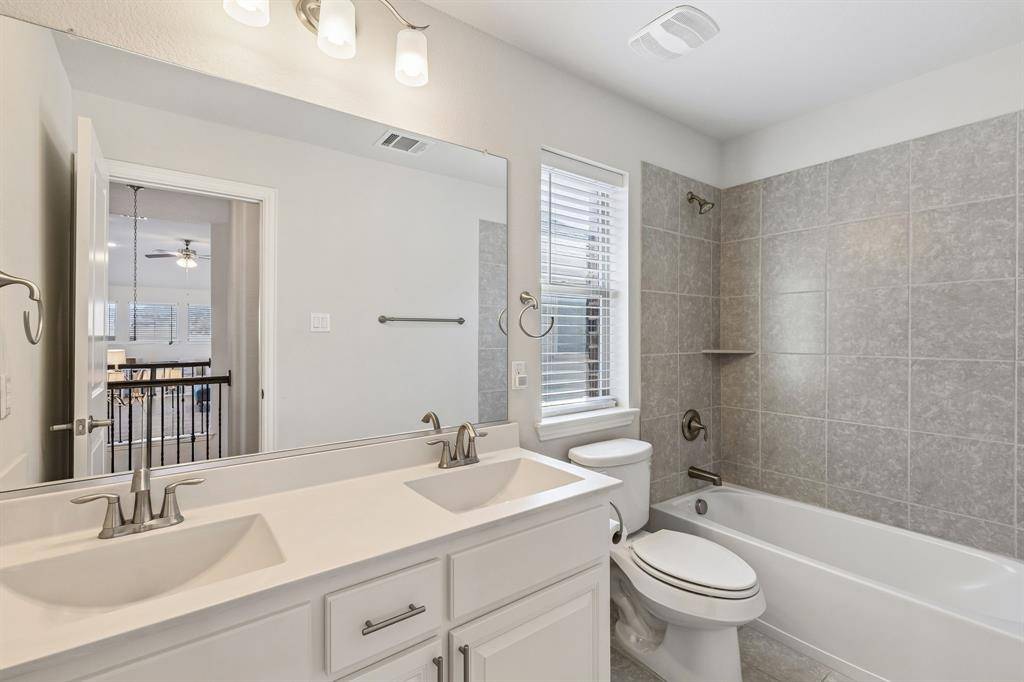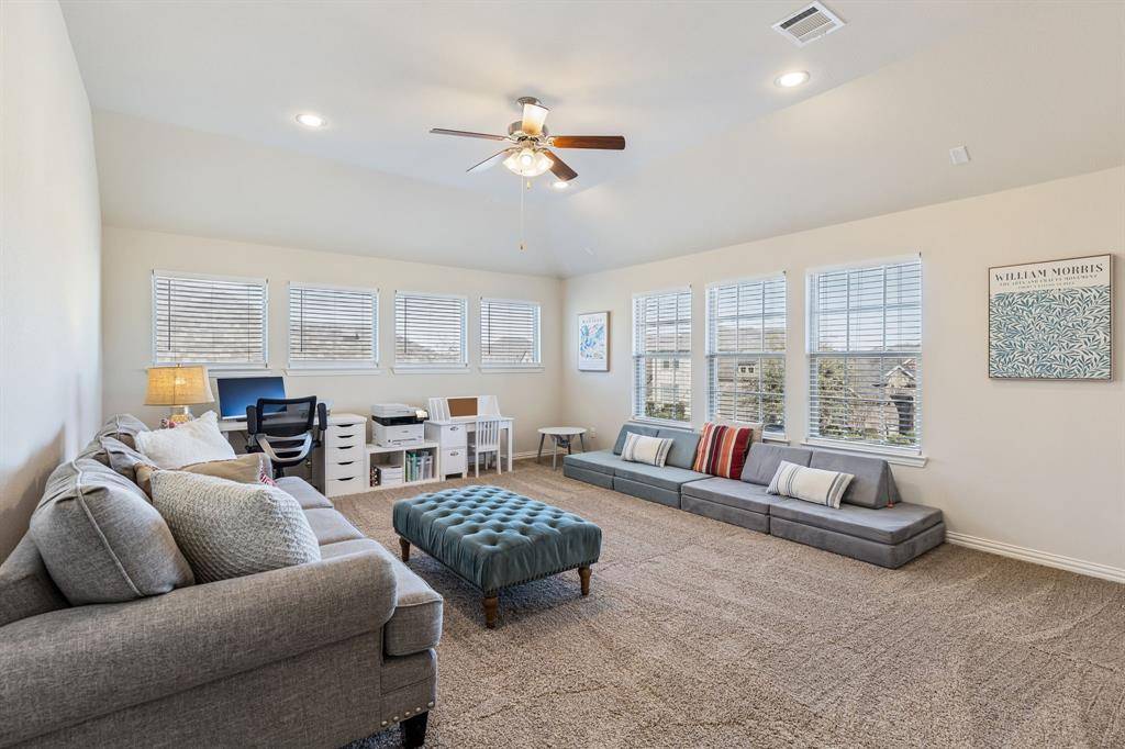 Located in the Berkshire community of Fort Worth Texas in Tarrant County and zoned to Northwest ISD, this 4 bedroom, 3 bathroom residence offers approximately 3,182 square feet of two story living built by K. Hovnanian Homes in 2016. Positioned near Highway 287, Blue Mound Road and Interstate 35W, Berkshire in Fort Worth provides convenient commuter access toward the Alliance Corridor and Downtown Fort Worth while remaining minutes from Alliance Town Center and Presidio Towne Crossing. Designed for open concept functionality and flexible gathering space, the floor plan connects the kitchen, dining and main living area to support everyday living and entertaining. The primary suite includes dual sinks, granite counters, separate shower and walk in closet space creating a private retreat within the home. Secondary bedrooms are arranged to balance shared areas with personal space. If you are searching for 4 bedroom homes in Fort Worth Texas within Northwest ISD near Alliance, this layout supports both daily functionality and long term value. Interior updates include premium wood look tile flooring installed in 2025, plantation shutters and tall ceilings that enhance natural light throughout the home. The upstairs game room offers a separate activity space with multiple windows and abundant natural light. The main living area is anchored by a gas fireplace with tile surround and decorative mantel while the kitchen features under cabinet lighting, generous cabinetry and an open layout designed for gatherings. Extensive storage includes large bedroom closets and additional hallway storage. Outdoor living extends to a covered patio with added pavers for grilling and entertaining. Community amenities in Berkshire include a pool, playground, clubhouse and walking trails. This property presents a balanced combination of layout versatility, Northwest ISD zoning and established Berkshire positioning within the north Fort Worth Texas market.