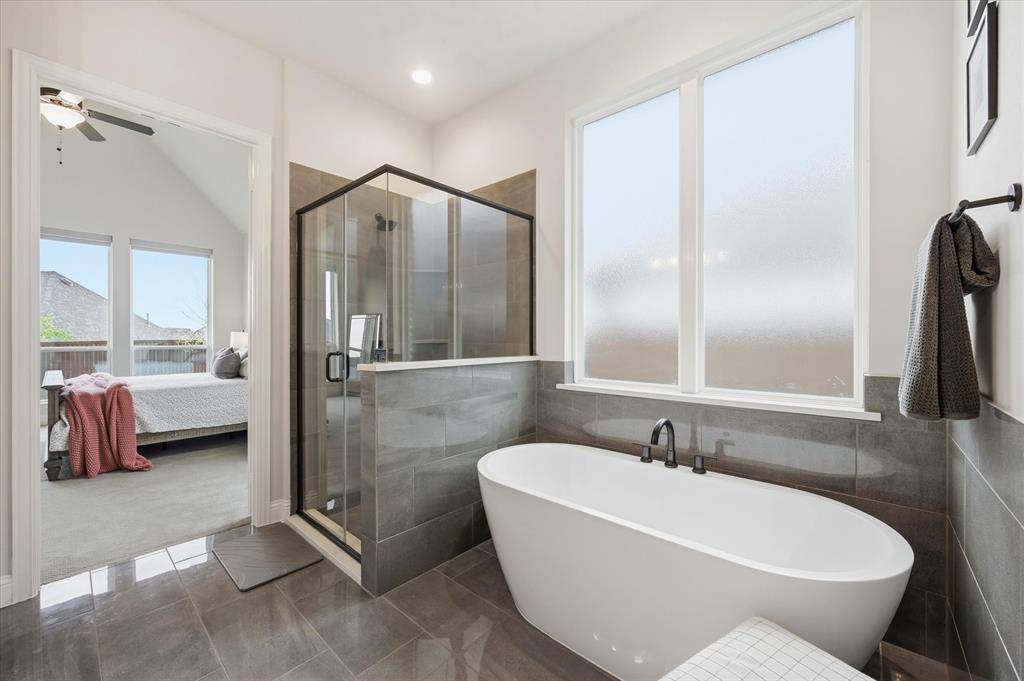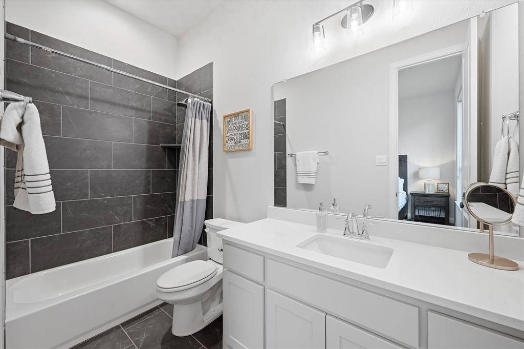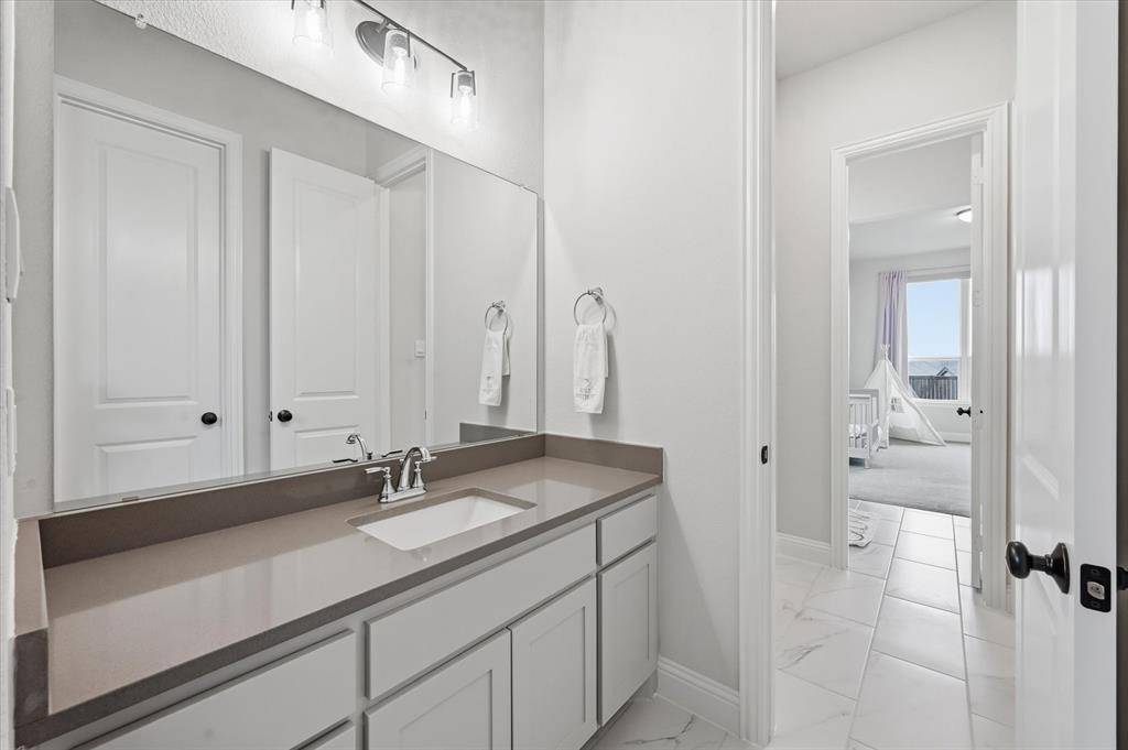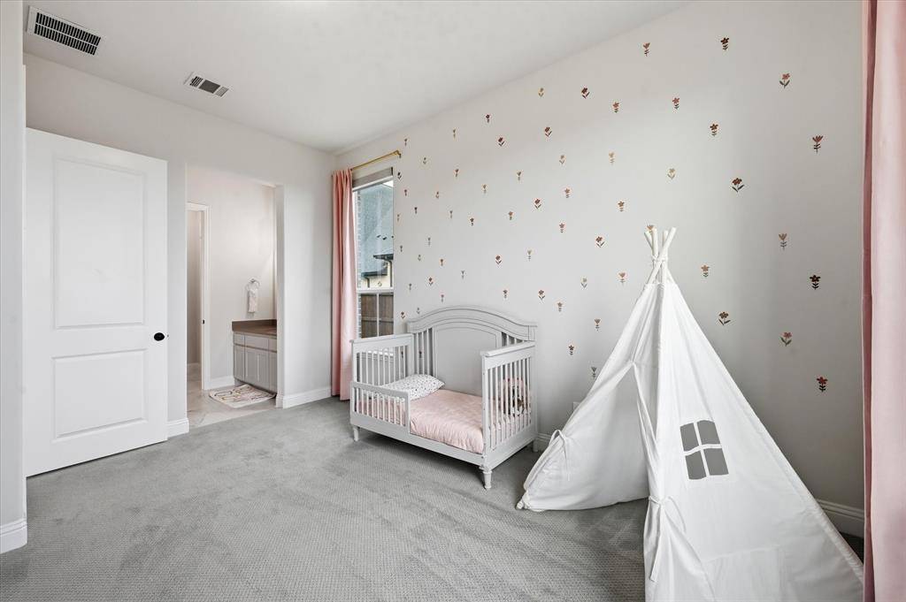Situated on an oversized 80ft premium lot tucked into a quiet cul-de-sac and just moments from the Hilltop Club, this 2023 American Legend home brings together thoughtful design, high end upgrades, and a layout that actually makes sense for how people live. From the moment you walk in, the tall ceilings and natural light set the tone, with a private office at the front of the home framed by plantation shutters, giving you a clean, polished workspace without sacrificing privacy. The main living area opens up effortlessly, anchored by a spacious kitchen with a massive island, upgraded finishes, and a large walk-in pantry that keeps everything tucked away but within reach. The flow into the living and dining spaces makes it feel open without losing definition, ideal for both everyday living and hosting. The primary suite is exactly what you want it to be, spacious, quiet, and positioned for privacy, while the additional mother in law suite or second primary with its own ensuite bath gives you flexibility for guests, multigenerational living, or that perfect long term setup. The secondary bedrooms are thoughtfully connected by a jack and jill bathroom, creating a functional layout that works well for family or guests. A dedicated media room adds another layer, ready for movie nights, game days, or just a space to unwind. With over $85K in builder upgrades (full list available), every detail has been elevated beyond the standard build. Step outside to a covered patio overlooking a large backyard that actually gives you room to breathe, something you just don't get on most 80ft lots. Located in highly rated Northwest ISD, just minutes from a plethora of restaurants, shopping, and retail, and finished with a 3 car garage, this is the kind of home that checks boxes you didn't even know you had.