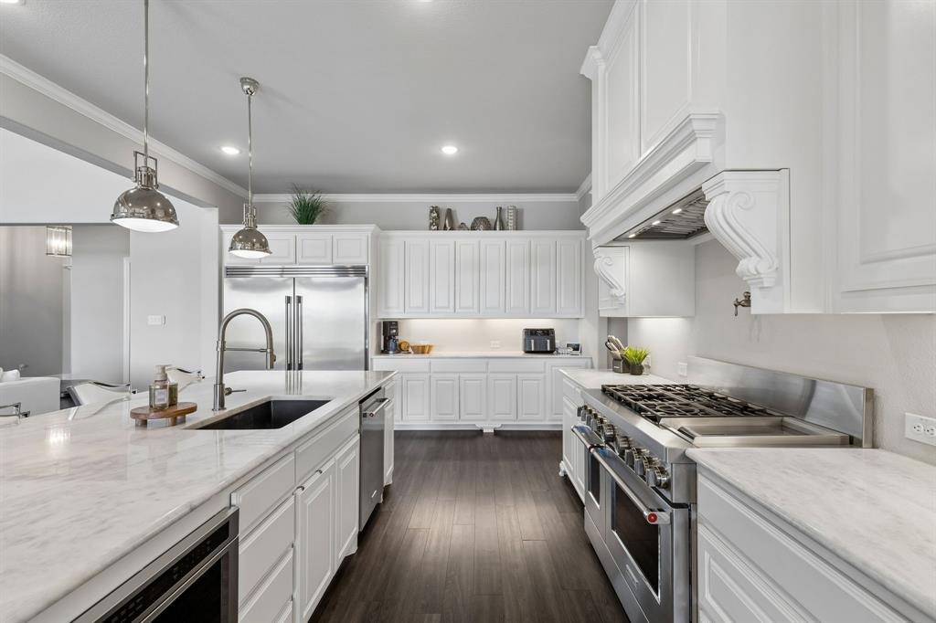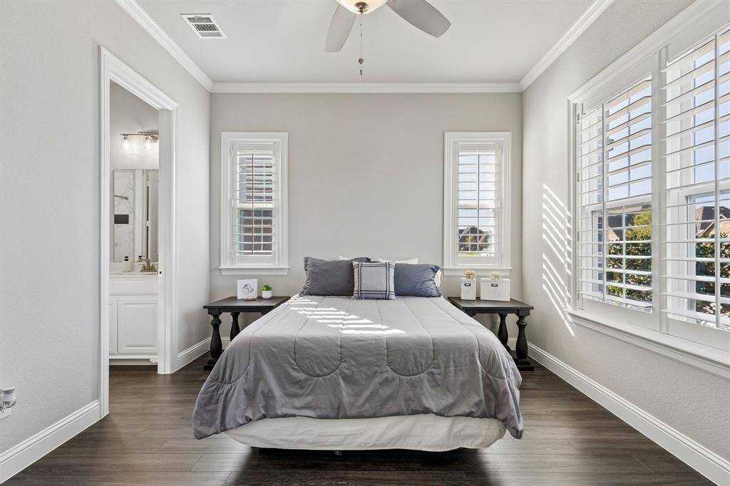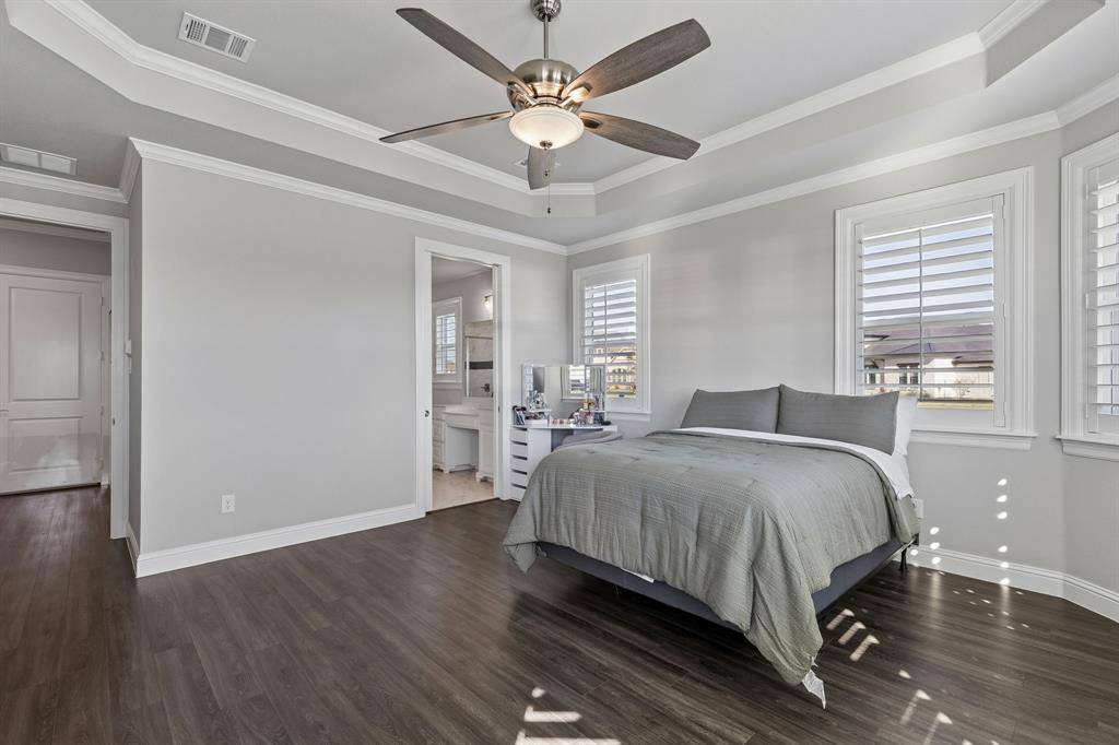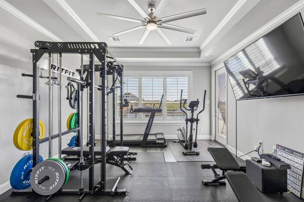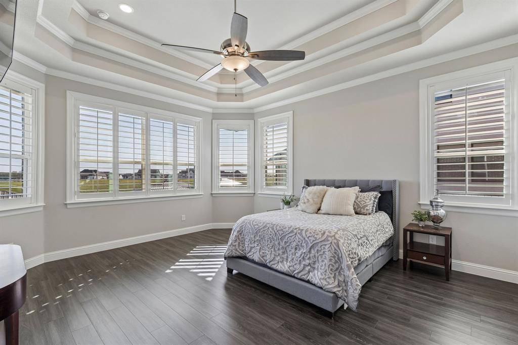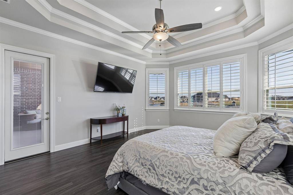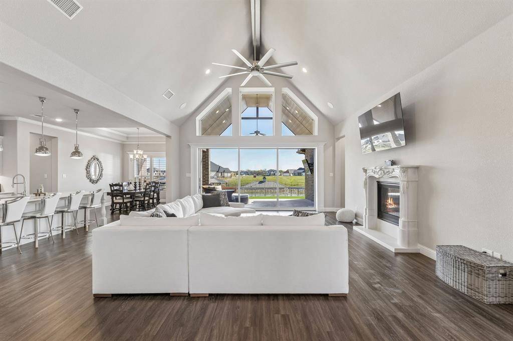 This stunning single story custom waterfront home is located in The Resort on Eagle Mountain Lake. The only 24-7 gated and guarded golf course community on Eagle Mountain Lake. Built in 2021, the home offers 4 spacious bedrooms, 4 full bathrooms, a dedicated office, and a versatile game room or flex space. The thoughtfully designed open concept layout seamlessly connects the kitchen, dining area, and living room, where sliding glass doors frame serene canal views and create effortless indoor and outdoor living. The chef's kitchen features marble stone countertops, a built in commercial grade refrigerator, gas range, walk in pantry, and custom cabinetry. The primary suite overlooks the water and offers a spa inspired en suite bath along with a walk in closet. A secondary master suite is located on the other side of the home with canal views, large en-suite bath and walk in closet. Two additional guest bedrooms are well appointed, one having an en-suite bath and the other convenient powder bath for visitors. The dedicated office, complete with French doors, overlooks both the living area and the canal, providing an inspiring work from home setting. The flex room currently being used as a gym has direct access to the patio as well. Step outside to a backyard ready for your vision, whether it's a resort style pool, extended patio, or outdoor retreat. Your private boat dock includes both a boat lift and jet ski lift, making lakeside living effortless and enjoyable year round. Notable upgrades include two tankless water heaters, a circular driveway, surround sound in the living and game rooms, and custom plantation shutters throughout. Residents of The Resort enjoy unmatched amenities, including a 19-hole golf course, clubhouse with restaurant and bar, two pools, fitness center, playground, sports courts, private beach with pergolas, boat ramp, and more. This is a rare opportunity to own a waterfront property in one of Eagle Mountain Lake's most exclusive communities.