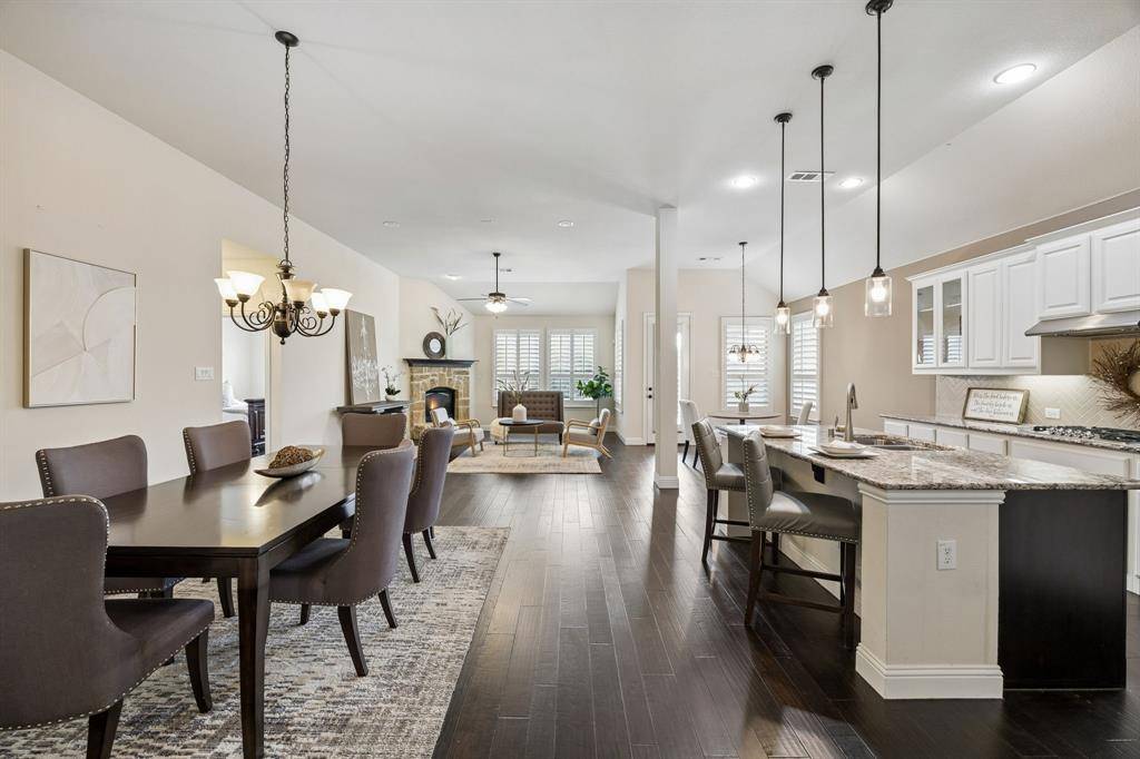 Immaculate single-story home nestled in the highly sought-after North Fort Worth community! This stunning 4-bedroom, 4-bath home offers a thoughtfully designed open floor plan perfect for both everyday living and entertaining. The spacious kitchen features a large island, ideal for gathering, meal prep, and hosting guests, all flowing seamlessly into the main living areas.