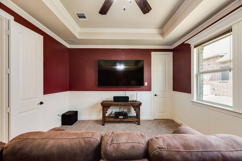 Experience resort style living in the prestigious, 24-hour guarded and gated The Resort on Eagle Mountain Lake. The home boasts 4 bedrooms, 3 bathrooms (the fourth bedroom is currently set up as a media room but could easily be a 4th bedroom) Media room equipment and furniture can convey.It also boasts a separate office and dining room and a 3 car garage. The oversized 3-car garage includes dedicated space for a golf cart, workshop, or lake toys. The primary suite is a true sanctuary, boasting a spa-inspired bath with a soaking tub, separate glass shower, and an oversized walk-in closet with custom built-ins. This property offers modern sophistication and resort-style relaxation just minutes from the heart of Fort Worth and the Stockyards. The seamless transition to the outdoor living area invites you to relax on the covered patio, complete with a built-in grill and panoramic views of the manicured golf course—perfect for sunset gatherings or tranquil mornings.Seller has provided a list of items that can convey with the property. The list has been added to the listing. As a resident, indulge in world-class amenities: an 18-hole championship golf course, a grand clubhouse with a restaurant and vibrant bar, resort-style pools, a state-of-the-art fitness center, and courts for pickle ball and basketball. The community's lush landscaping, playgrounds and golf cart trails create a resort atmosphere year-round. Community residents enjoy an unparalleled lifestyle with exclusive Eagle Mountain Lake access including a private beach and playground. Listing will be active on April 2nd but please reach out if you want to see it sooner. Buyer and or buyers agent to verify all information contained in this listing.