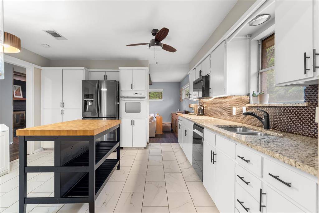 Spacious and thoughtfully designed, this home offers a flexible layout perfect for both everyday living and entertaining. The oversized family room flows seamlessly into a bright eat-in kitchen, creating a welcoming central hub for gatherings. A separate dining area and spacious additional living room provide even more space to host or relax. The private primary suite is tucked away and features generous proportions, a large walk-in closet, and an en-suite bath with dual vanities. Two additional bedrooms are well-sized and share convenient access to the bathroom, making the layout ideal for family or guests. With a functional foyer, ample hallway storage, and a practical flow between rooms, this home balances comfort and usability. Whether you're looking for room to spread out or spaces to come together, this floor plan delivers versatility and charm. The basement adds an extra special space for all kinds of uses. The backyard is huge, with separate areas for a garden, play area or outdoor life. This home is a must see!