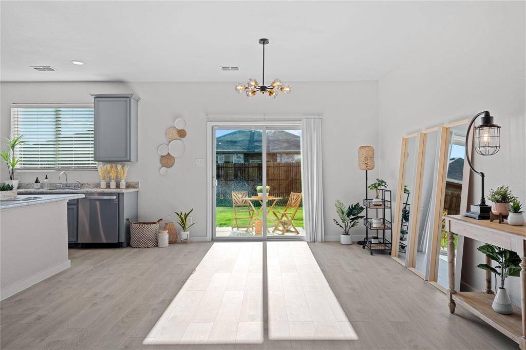 BEAUTIFUL HOME with GREAT DESIGN and color choices! Large open floor plan and split bedrooms. FRESH PAINT throughout! UDATED Kitchen with NEW DISHWASHER and NEW STOVE, new flooring throughout entire home, new blinds, Beautiful Epoxy garage flooring and finished out garage, fresh landscaping! Large backyard has lots of room for entertaining with new patio and fire-pit area.There is plenty of storage space in this home with the large laundry room and bedroom closets. Beautiful Barn Door and spacious master bathroom. Large dining area connected to kitchen and living room. Just minutes from schools and parks. Van Alstyne has received 4.5 stars in school districts since 2016. Full EPOXY finished out Garage. WELCOME HOME!